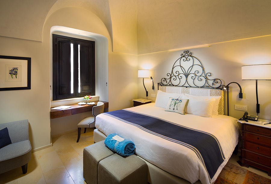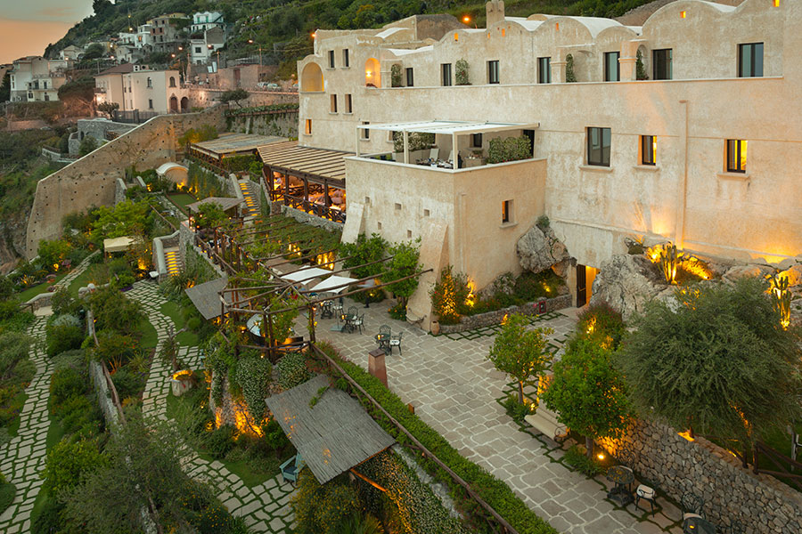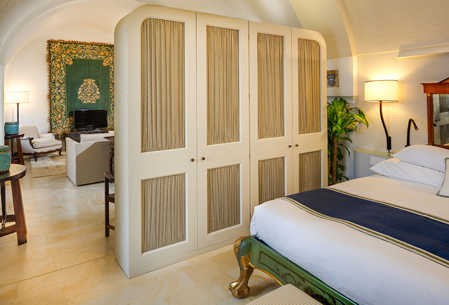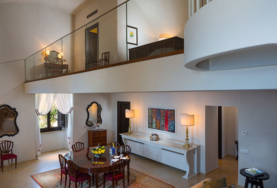 Today, the converted monastery contains 20 rooms and suites, each with a spellbinding sea view stretching from the Conca dei Marini fishing harbor below to Amalfi and beyond. Within those rooms, guests will find a striking balance of old and new where history is preserved, but luxury is at every touch. The spiritual enchantment of the transformed monastery remains ever present with each of the accommodations named for an herb or plant that the nuns would have used in making their products from the Monastero Santa Rosa garden.