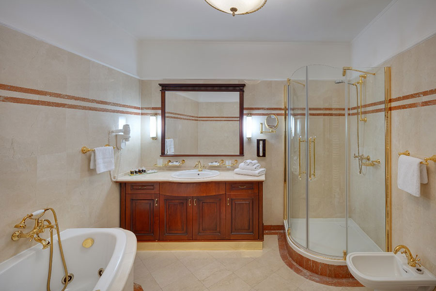 Treatments: The treatment area has its own elegance and richness to offer: the Royal Cabin and the Imperial Room, two special treatment rooms where the original historical decor has been preserved. This is the medical centre of the Health Spa, where a multitude of physiotherapy and spa treatments are offered: massages, balneotherapy and hydrotherapy treatments, drinking cures, special mineral baths and inhalation therapies are all available in different rooms. In the beauty salon, guests are pampered with cosmetic.