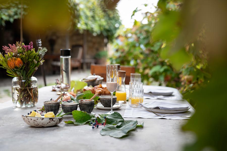 Nestled within our olive grove, our organic vegetable gardens cultivate over 50 varieties of vegetables and 30 aromatic herbs, ensuring a fresh and seasonal supply for our estate. Eggs come fresh from our estate’s chicken coop, while jams and bread are lovingly prepared on-site, ensuring every meal is a true reflection of our dedication to quality and authenticity.